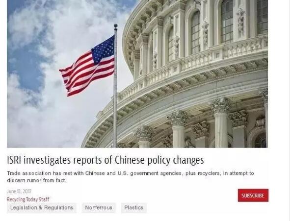【行業(yè)資訊】重磅!中國(guó)年底前將禁止進(jìn)口4類24種固體廢物英國(guó)路透社7月19日?qǐng)?bào)道稱,中國(guó)在送交WTO中的文件表示,一般可回收利用的固體垃圾中,常摻雜有為數(shù)不少的高污染垃圾與危險(xiǎn)性廢物,污染中國(guó)環(huán)境,為了保護(hù)環(huán)境與人民的健康,中國(guó)要調(diào)整垃圾進(jìn)口法規(guī),拒收高污染的固體廢棄物。報(bào)道稱,中國(guó)是全球主要的垃圾進(jìn)口國(guó)家,接收全球56%的垃圾,去年進(jìn)口逾730萬(wàn)公噸,總值達(dá)37億美元。根據(jù)WTO資料,不算香港地區(qū),中國(guó)主要廢棄塑膠是來(lái)自于日本和美國(guó),各占全球約10%,廢紙的最大來(lái)源也是這兩國(guó)。