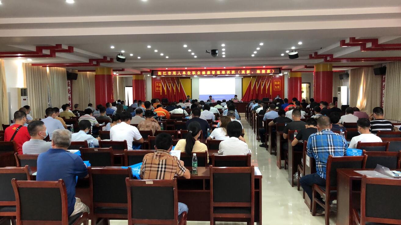 培訓(xùn)由陽江市衛(wèi)生健康局主辦,江城區(qū)、陽東區(qū)、陽春市、陽西縣衛(wèi)生健康局和海陵區(qū)、高新區(qū)安全監(jiān)管局承辦,陽江市疾病預(yù)防控制中心、陽春市疾病預(yù)防控制中心和廣東陽職檢測評價技術(shù)服務(wù)有限公司協(xié)辦,共免費培訓(xùn)用人單位職業(yè)健康負責人、管理人員490多人。
